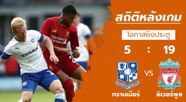 สถิติหลังเกมอุ่นเครื่อง วันพฤหัสบดีที่ 11 กรกฎาคม 2562 ทรานเมียร์ 0-6 ลิเวอร์พูล