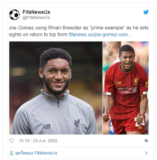 โจ โกเมซ ปราการหลัง ลิเวอร์พูล ได้ออกมาชื่นชม ริอาน บริวสเตอร์